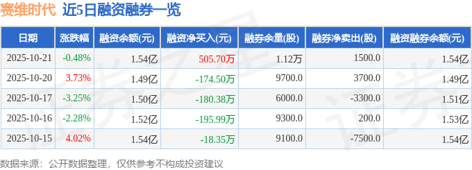 赛维时代融资融券信息显示,融资方面,当日融资买入1208.36万元,融资偿还702.66万元,融资净买入505.7万元。融券方面,融券卖出1500.0股,融券偿还0.0股,融券余量1.12万股,融券余额25.44万元。融资融券余额1.54亿元。