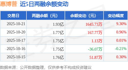 证券之星消息,10月21日,惠博普(002554)融资买入3054.59万元,融资偿还1408.86万元,融资净买入1645.73万元,融资余额1.93亿元,近3个交易日已连续净买入累计1814.63万元。