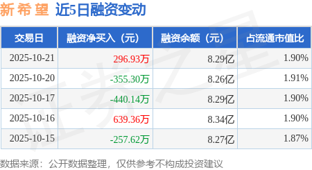 证券之星消息,10月21日,新 希 望(000876)融资买入2669.4万元,融资偿还2372.47万元,融资净买入296.93万元,融资余额8.29亿元,近20个交易日中有12个交易日出现融资净买入。