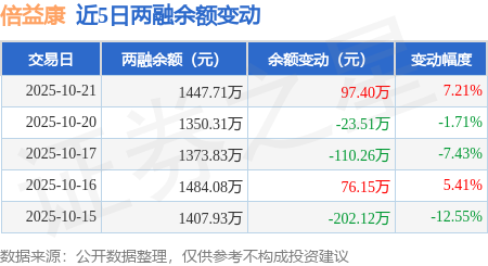 证券之星消息,10月21日,倍益康(920199)融资买入303.34万元,融资偿还205.94万元,融资净买入97.4万元,融资余额1447.71万元。