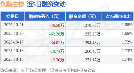 证券之星消息,10月21日,永顺生物(920729)融资买入109.16万元,融资偿还62.67万元,融资净买入46.5万元,融资余额1278.73万元。