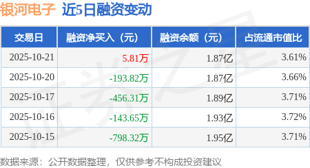 证券之星消息,10月21日,银河电子(002519)融资买入553.18万元,融资偿还547.37万元,融资净买入5.81万元,融资余额1.87亿元。