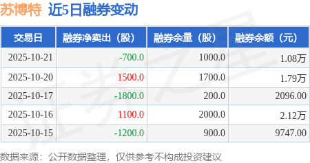 证券之星消息,10月21日,苏博特(603916)融资买入898.35万元,融资偿还899.35万元,融资净卖出1.0万元,融资余额1.17亿元。