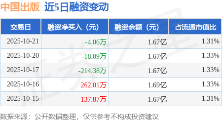 证券之星消息,10月21日,中国出版(601949)融资买入381.98万元,融资偿还386.04万元,融资净卖出4.06万元,融资余额1.67亿元。