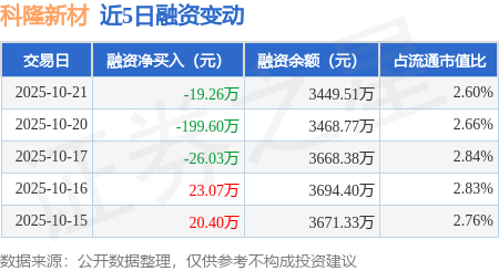 证券之星消息,10月21日,科隆新材(920098)融资买入94.39万元,融资偿还113.65万元,融资净卖出19.26万元,融资余额3449.51万元。
