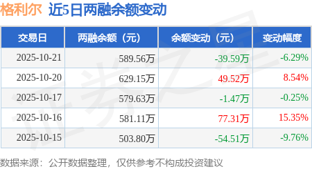 证券之星消息,10月21日,格利尔(920641)融资买入89.44万元,融资偿还129.02万元,融资净卖出39.59万元,融资余额589.56万元。