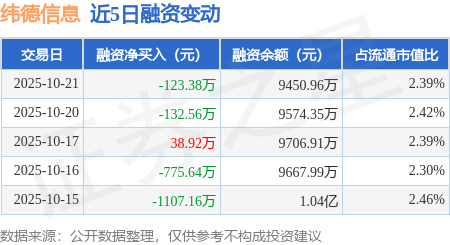 证券之星消息,10月21日,纬德信息(688171)融资买入370.58万元,融资偿还493.96万元,融资净卖出123.38万元,融资余额9450.96万元。