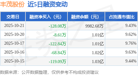 证券之星消息,10月21日,丰茂股份(301459)融资买入133.63万元,融资偿还261.71万元,融资净卖出128.08万元,融资余额9982.68万元。