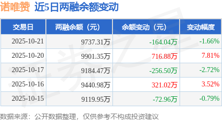 证券之星消息,10月21日,诺唯赞(688105)融资买入272.87万元,融资偿还437.48万元,融资净卖出164.62万元,融资余额9661.07万元。