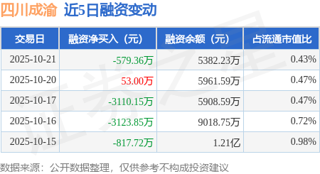 证券之星消息,10月21日,四川成渝(601107)融资买入432.64万元,融资偿还1012.0万元,融资净卖出579.36万元,融资余额5382.23万元。