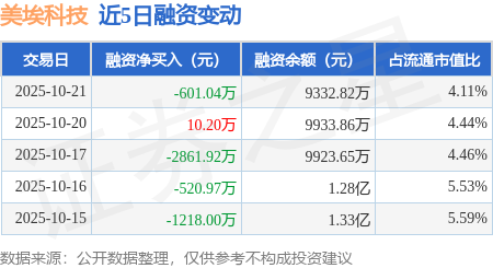 证券之星消息,10月21日,美埃科技(688376)融资买入391.61万元,融资偿还992.65万元,融资净卖出601.04万元,融资余额9332.82万元。