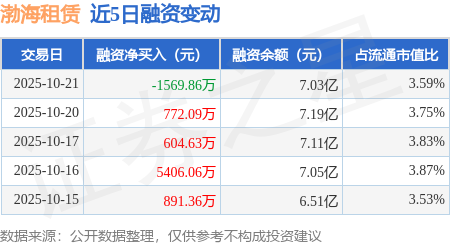 证券之星消息,10月21日,渤海租赁(000415)融资买入2958.23万元,融资偿还4528.09万元,融资净卖出1569.86万元,融资余额7.03亿元,近20个交易日中有11个交易日出现融资净买入。