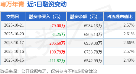 证券之星消息,10月21日,粤万年青(301111)融资买入569.61万元,融资偿还490.61万元,融资净买入79.0万元,融资余额6984.13万元,近20个交易日中有14个交易日出现融资净买入。