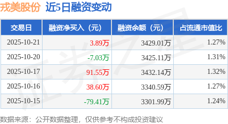 证券之星消息,10月21日,戎美股份(301088)融资买入319.27万元,融资偿还315.37万元,融资净买入3.89万元,融资余额3429.01万元,近20个交易日中有11个交易日出现融资净买入。