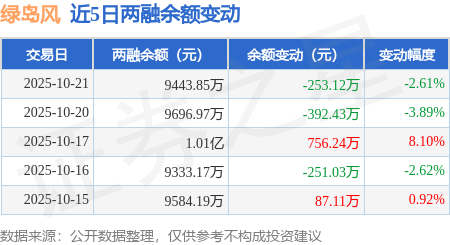 证券之星消息,10月21日,绿岛风(301043)融资买入1257.54万元,融资偿还1510.66万元,融资净卖出253.12万元,融资余额9443.85万元,近20个交易日中有11个交易日出现融资净买入。