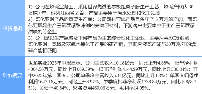 该股为液氯,烧碱,食品概念热股,当日液氯概念上涨1.22%,烧碱概念上涨0.31%,食品概念上涨0.1%。