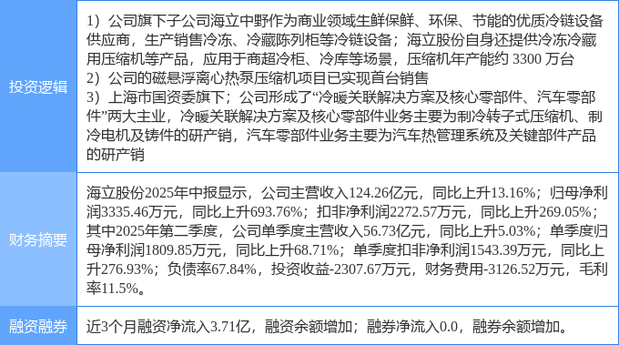 该股为磁悬浮压缩机,上海国企改革,冷链概念热股,当日磁悬浮压缩机概念上涨1.25%,上海国企改革概念上涨0.56%,冷链概念上涨0.32%。