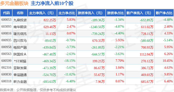 从资金流向上来看,当日多元金融板块主力资金净流出4.04亿元,游资资金净流入175.42万元,散户资金净流入4.03亿元。多元金融板块个股资金流向见下表:
