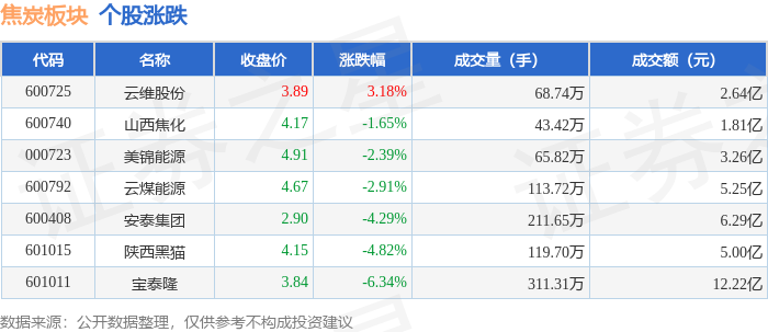 证券之星消息,10月22日焦炭板块较上一交易日下跌2.82%,宝泰隆领跌。当日上证指数报收于3913.76,下跌0.07%。深证成指报收于12996.61,下跌0.62%。焦炭板块个股涨跌见下表: