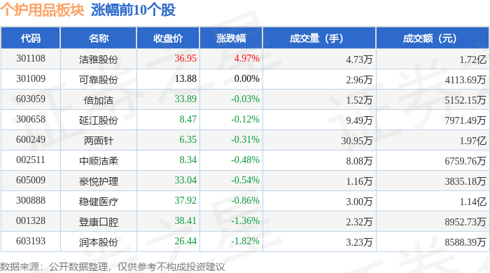 从资金流向上来看,当日个护用品板块主力资金净流出2609.13万元,游资资金净流入427.16万元,散户资金净流入2181.97万元。个护用品板块个股资金流向见下表: