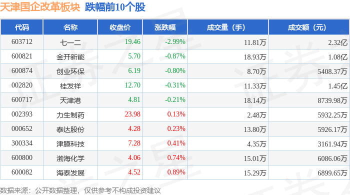 从资金流向上来看,当日天津国企改革板块主力资金净流入8366.52万元,游资资金净流出8994.38万元,散户资金净流入627.86万元。天津国企改革板块个股资金流向见下表: