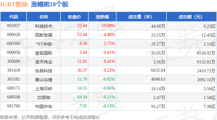 从资金流向上来看,当日IGBT板块主力资金净流出39.62亿元,游资资金净流入14.01亿元,散户资金净流入25.61亿元。IGBT板块个股资金流向见下表: