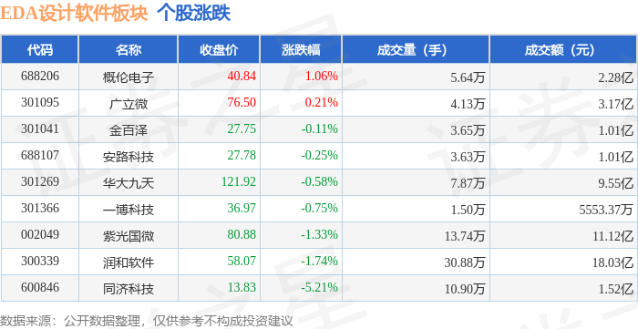 证券之星消息,10月22日EDA设计软件板块较上一交易日下跌0.96%,同济科技领跌。当日上证指数报收于3913.76,下跌0.07%。深证成指报收于12996.61,下跌0.62%。EDA设计软件板块个股涨跌见下表:
