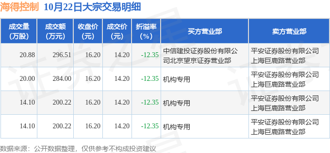证券之星消息,10月22日海得控制发生大宗交易,交易数据如下: