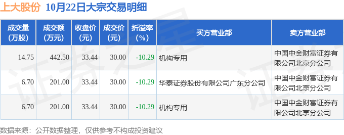 证券之星消息,10月22日上大股份发生大宗交易,交易数据如下: