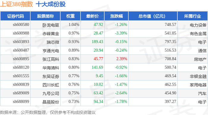 证券之星消息,10月22日,上证380(000009)指数报收于6407.66点,跌0.8%,成交1505.14亿元,换手率1.43%。当日该指数成份股中,上涨的有125家,莱克电气以9.99%的涨幅领涨,下跌的有251家,科博达以10.0%的跌幅领跌。