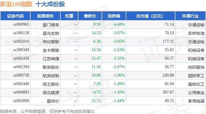 新浪100(399297)指数十大成份股详情如下: