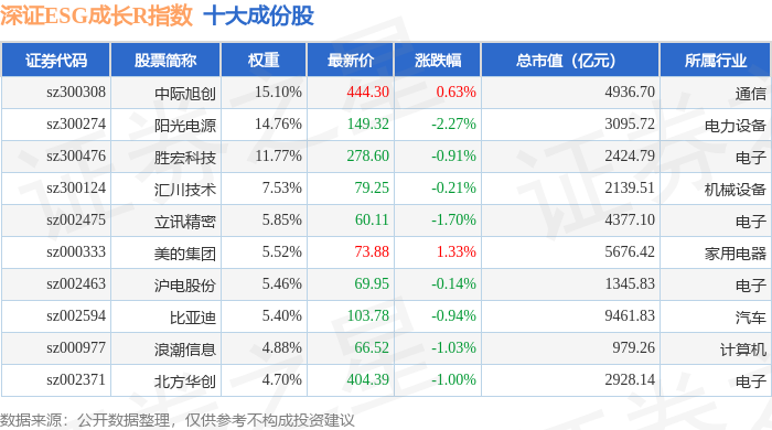 深证ESG成长R(470060)指数十大成份股详情如下: