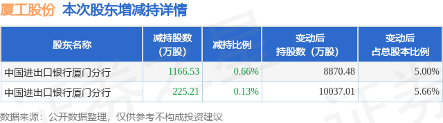 证券之星消息,10月22日厦工股份发布公告《厦工股份:厦工股份关于持股5%以上股东权益变动触及5%刻度的提示性公告》,其股东中国进出口银行厦门分行于2025年9月11日至2025年10月21日间合计减持1391.74万股,占公司目前总股本的0.7844%,变动期间该股股价上涨14.55%,截止10月21日收盘报3.15元。