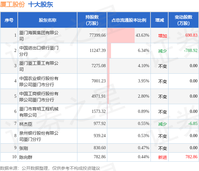 根据厦工股份2025年中报公布的十大股东详情如下: