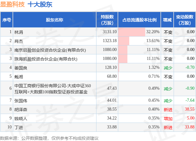 根据显盈科技2025年中报公布的十大股东详情如下: