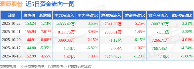 证券之星消息,截至2025年10月22日收盘,聚辰股份(688123)报收于153.24元,下跌1.73%,换手率5.64%,成交量8.92万手,成交额13.63亿元。