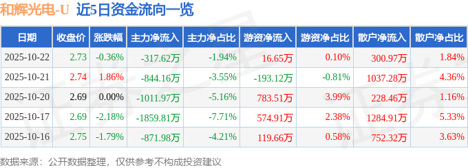 证券之星消息,截至2025年10月22日收盘,和辉光电(688538)报收于2.73元,下跌0.36%,换手率1.04%,成交量60.03万手,成交额1.64亿元。
