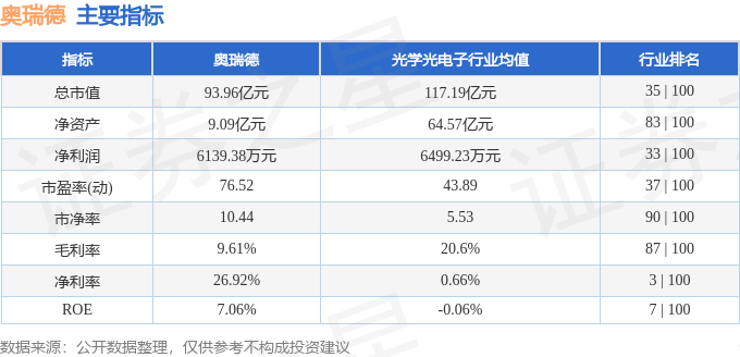 该股主要指标及行业内排名如下: