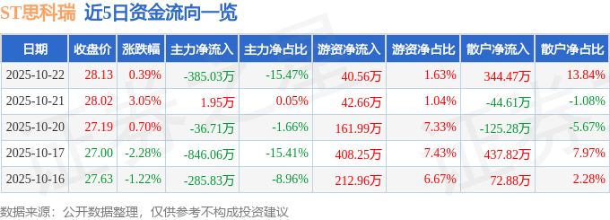 证券之星消息,截至2025年10月22日收盘,ST思科瑞(688053)报收于28.13元,上涨0.39%,换手率0.89%,成交量8852.0手,成交额2488.39万元。