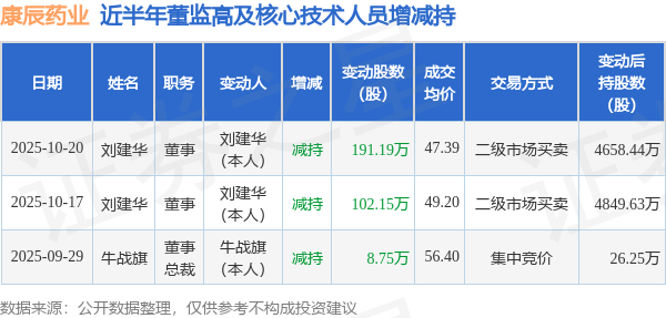 康辰药业近半年内的董监高及核心技术人员增减持详情如下: