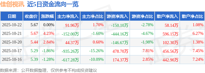 10月22日的资金流向数据方面,主力资金净流入91.96万元,占总成交额1.7%,游资资金净流出150.1万元,占总成交额2.78%,散户资金净流入58.14万元,占总成交额1.08%。