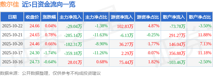 证券之星消息,截至2025年10月22日收盘,敷尔佳(301371)报收于24.66元,上涨0.04%,换手率1.1%,成交量8563.0手,成交额2110.61万元。