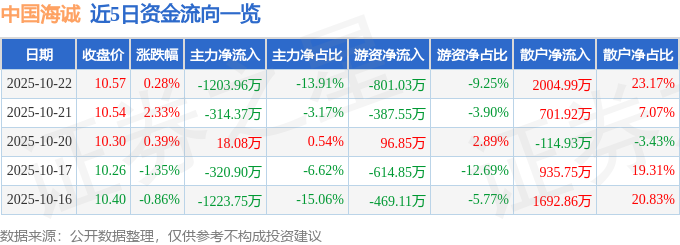 10月22日的资金流向数据方面,主力资金净流出1203.96万元,占总成交额13.91%,游资资金净流出801.03万元,占总成交额9.25%,散户资金净流入2004.99万元,占总成交额23.17%。
