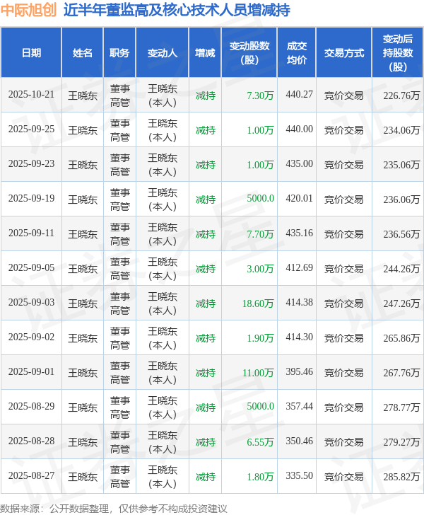 中际旭创近半年内的董监高及核心技术人员增减持详情如下: