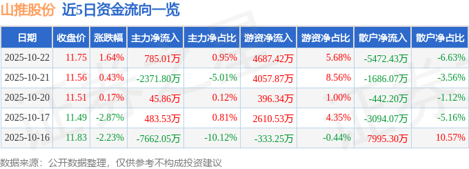 证券之星消息,截至2025年10月22日收盘,山推股份(000680)报收于11.75元,上涨1.64%,换手率5.27%,成交量69.26万手,成交额8.26亿元。