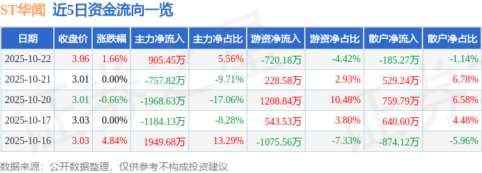 证券之星消息,截至2025年10月22日收盘,ST华闻(000793)报收于3.06元,上涨1.66%,换手率2.7%,成交量52.9万手,成交额1.63亿元。