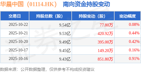 证券之星消息,10月22日南向资金增持77.8万股华晨中国(01114.HK)。近5个交易日中,获南向资金增持的有5天,累计净增持1894.72万股。近20个交易日中,获南向资金增持的有19天,累计净增持8951.0万股。截至目前,南向资金持有华晨中国(01114.HK)9.54亿股,占公司已发行普通股的18.9%。