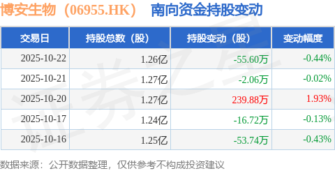 证券之星消息,10月22日南向资金减持55.6万股博安生物(06955.HK)。近5个交易日中,获南向资金增持的有1天,累计净增持111.76万股。近20个交易日中,获南向资金增持的有10天,累计净增持295.88万股。截至目前,南向资金持有博安生物(06955.HK)1.26亿股,占公司已发行普通股的20.26%。