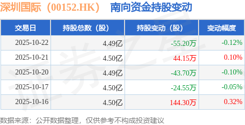证券之星消息,10月22日南向资金减持55.2万股深圳国际(00152.HK)。近5个交易日中,获南向资金增持的有2天,累计净增持65.0万股。近20个交易日中,获南向资金增持的有10天,累计净增持10.7万股。截至目前,南向资金持有深圳国际(00152.HK)4.49亿股,占公司已发行普通股的18.38%。