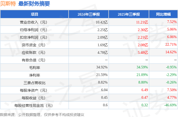 持有贝斯特最多的基金为招商丰盈积极配置混合A,目前规模为6.87亿元,最新净值0.7167(10月22日),较上一交易日下跌0.39%,近一年上涨22.6%。该基金现任基金经理为郭锐 文仲阳。